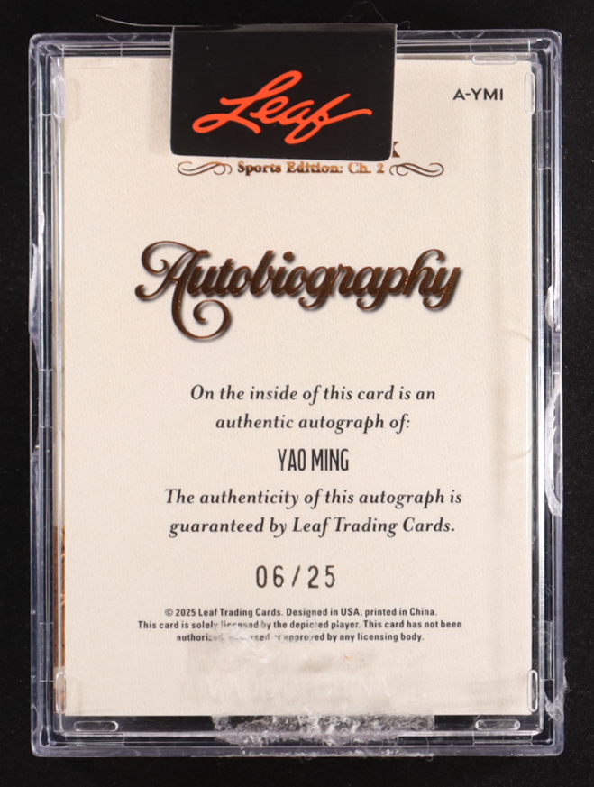 Yao Ming 2025 Leaf History Book Autobiography Booklet Sports Edition Chapter Two Signatures Orange #A-YMI #06/25