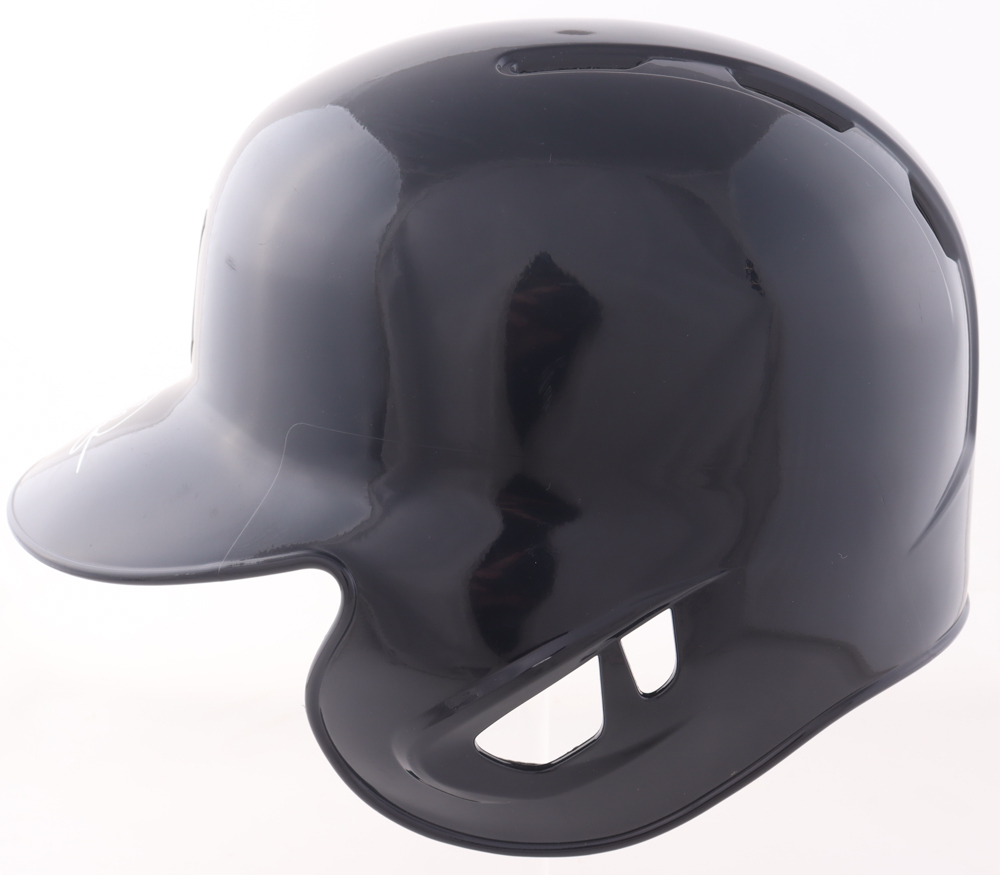 Rawlings New York Yankees full-size replica batting helmet has been hand-signed by Jasson Dominguez.