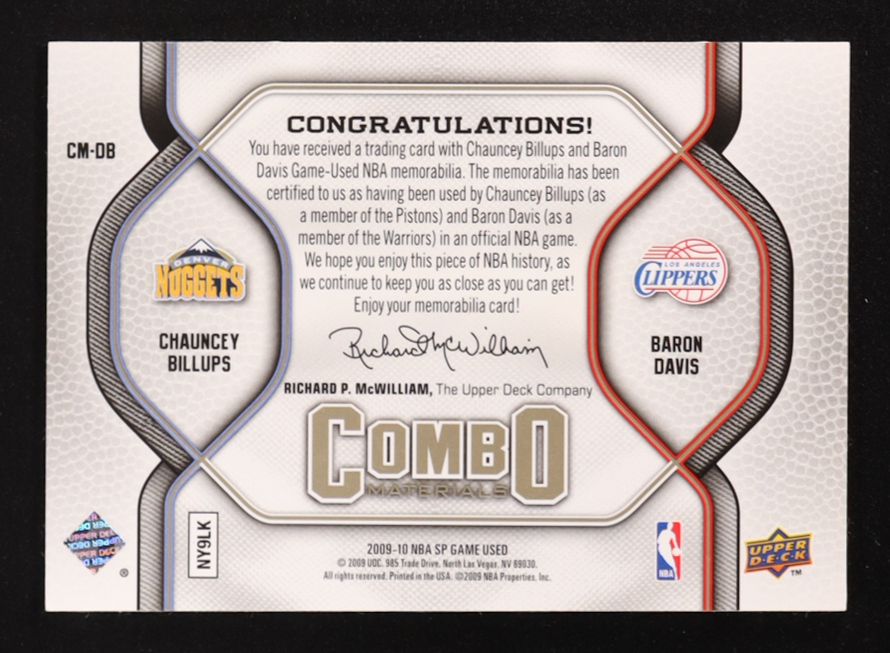 Baron Davis / Chauncey Billups 2009-10 SP Game Used Combo Materials 155 #CMDB #6/155