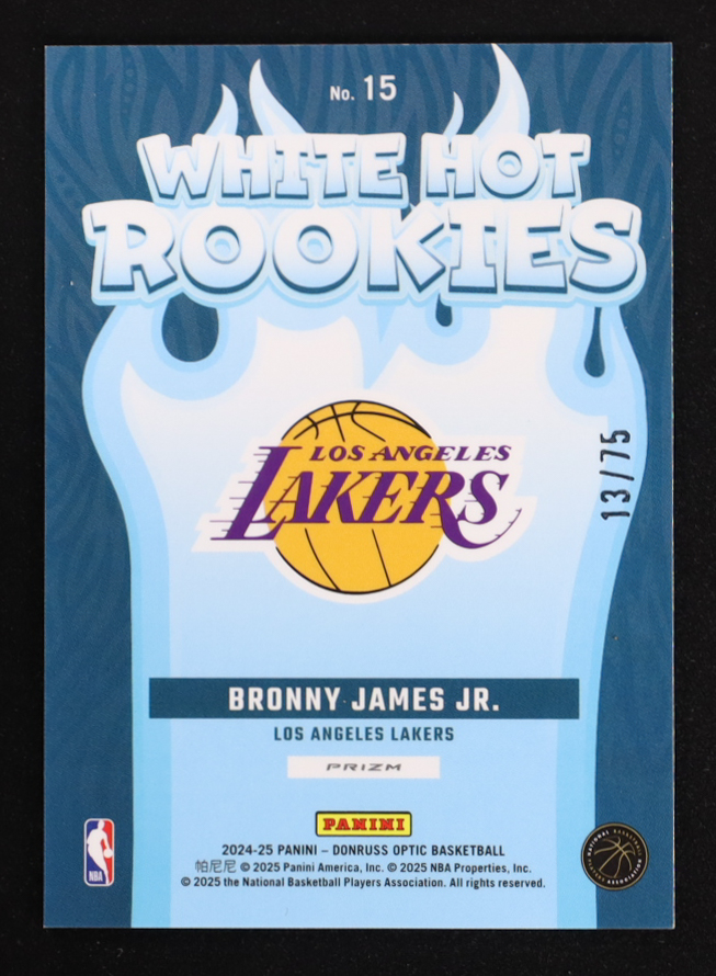 Bronny James Jr. 2024-25 Donruss Optic White Hot Rookies Red Shimmer #15 #13/75 RC