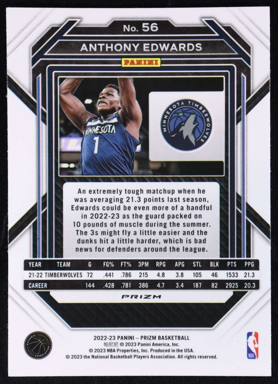 Anthony Edwards 2022-23 Panini Prizm Prizms Pink Ice #56