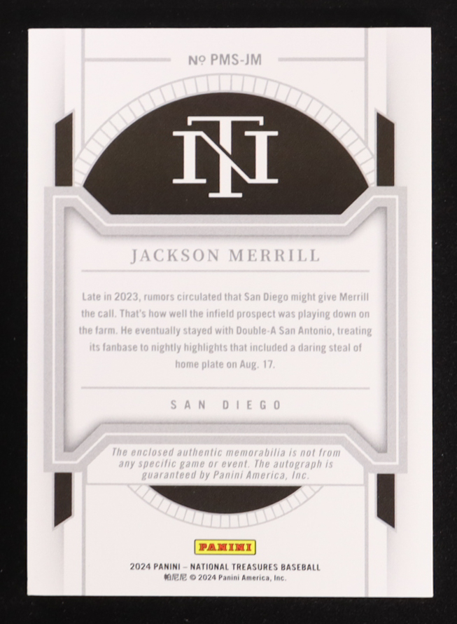 Jackson Merrill 2024 Panini National Treasures Prospect Material Signatures #93 #54/99 RC
