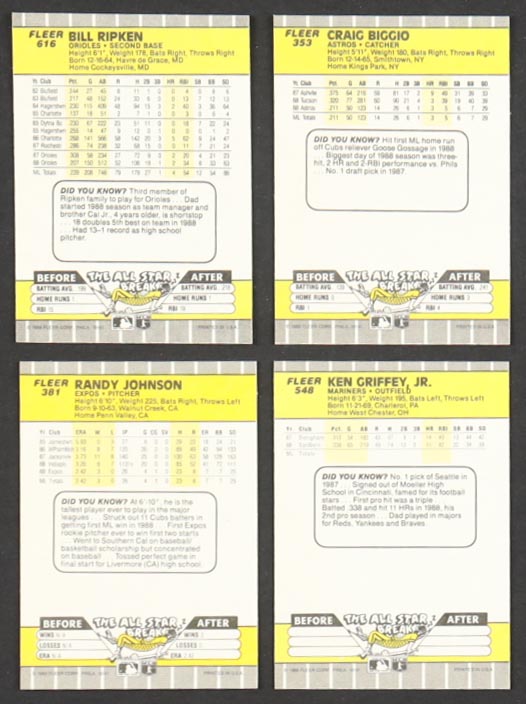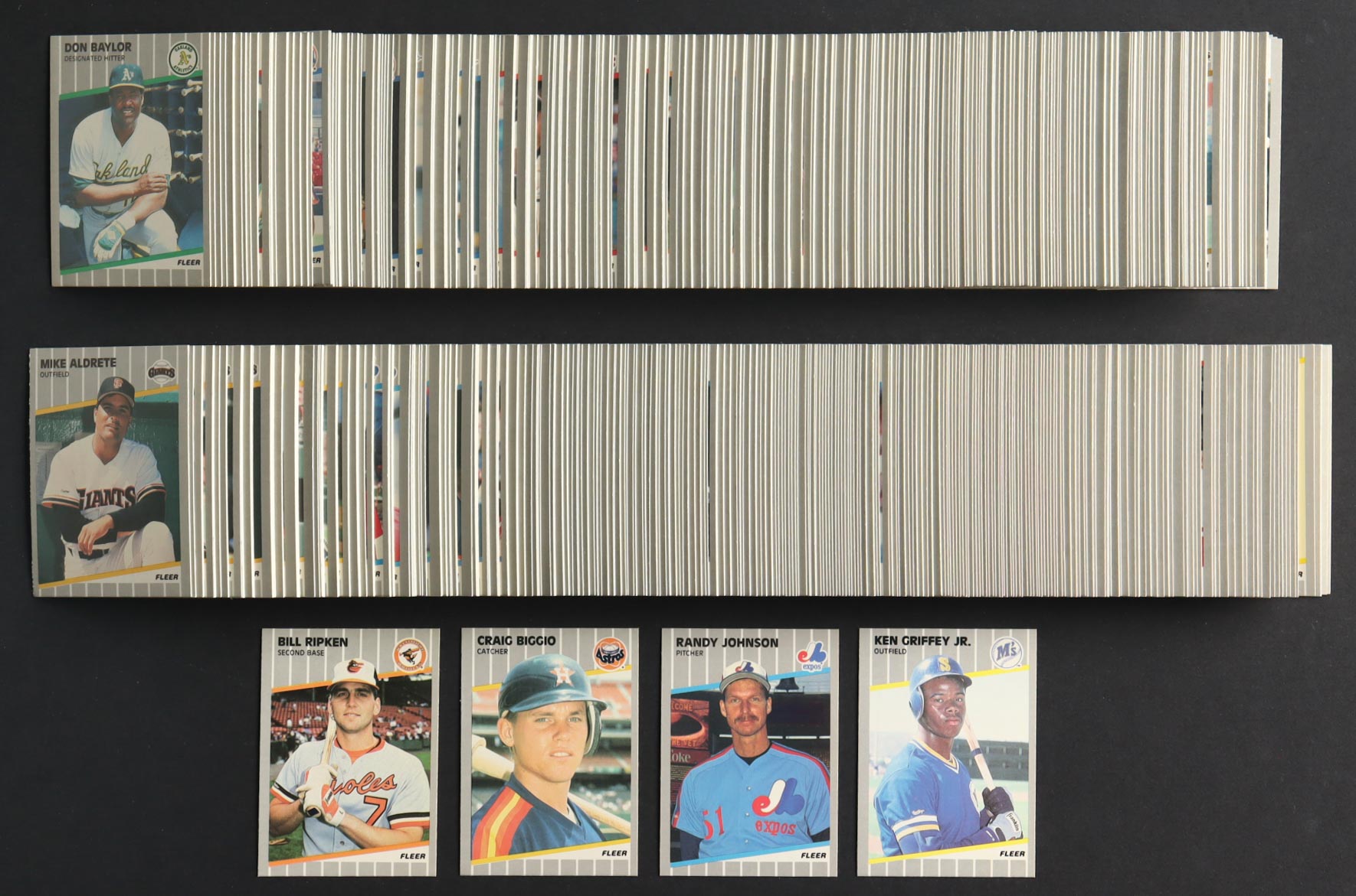 1989 Fleer Complete Set of (660) Baseball Cards with Craig Biggio #353 RC, Ken Griffey Jr. #548 RC, Randy Johnson #381 RC, Bill Ripken #616