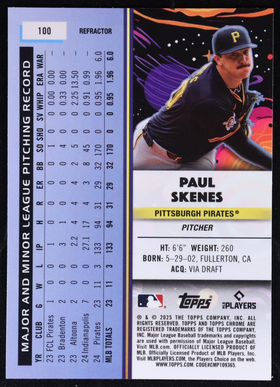 Paul Skenes 2025 Topps Cosmic Chrome Refractors #100