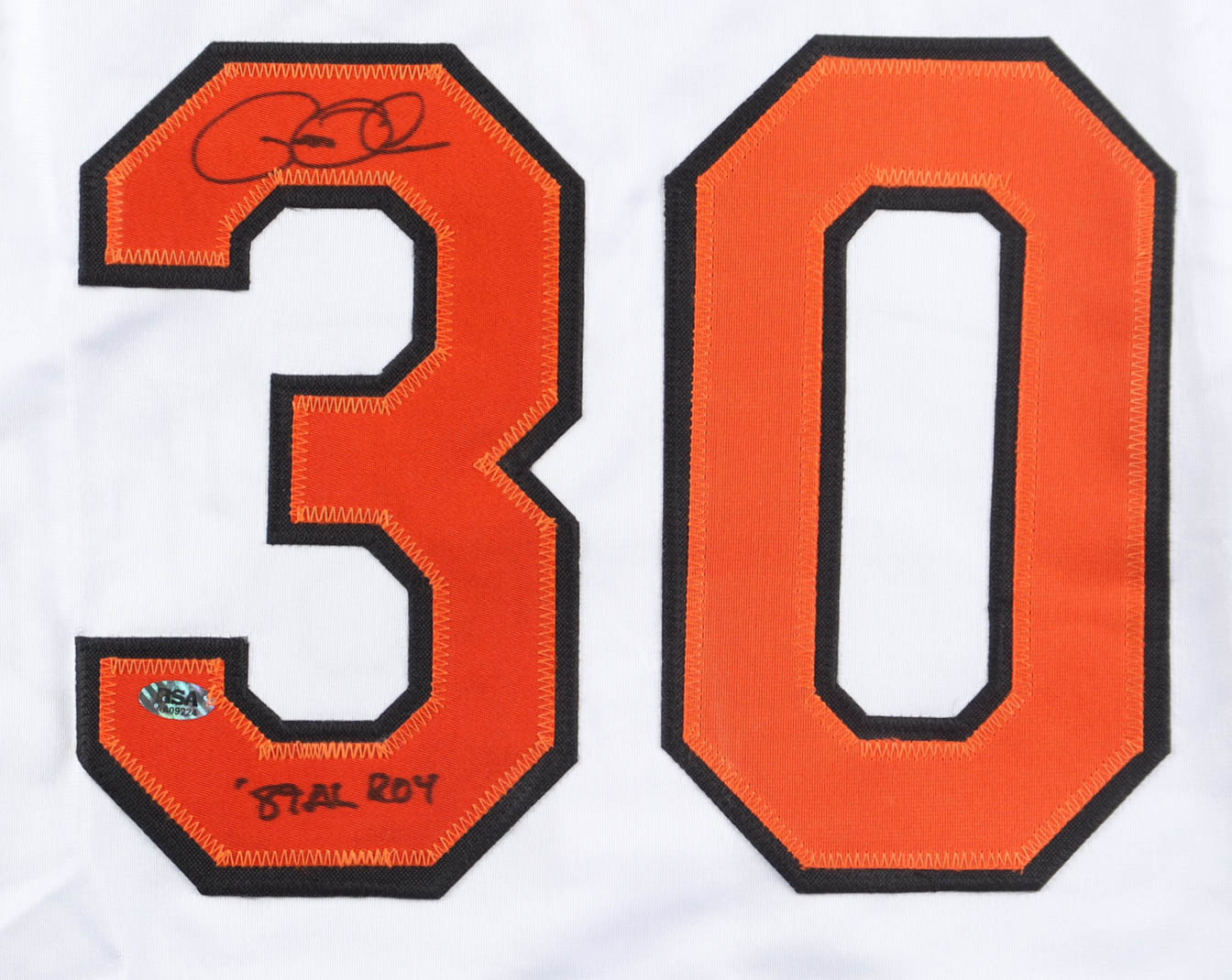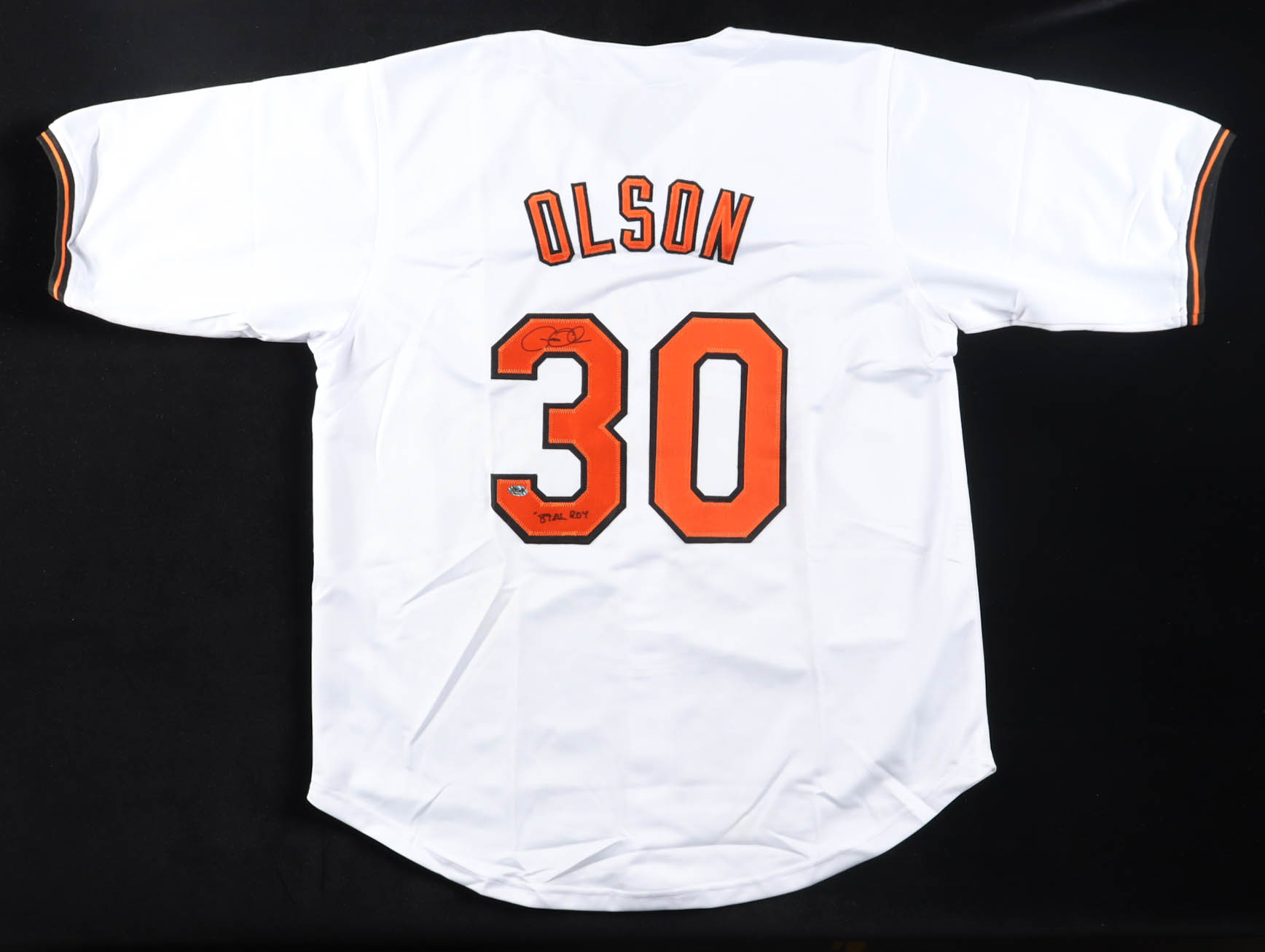 Custom jersey with everything sewn on, size XL. Hand-signed and inscribed by Gregg Olson.