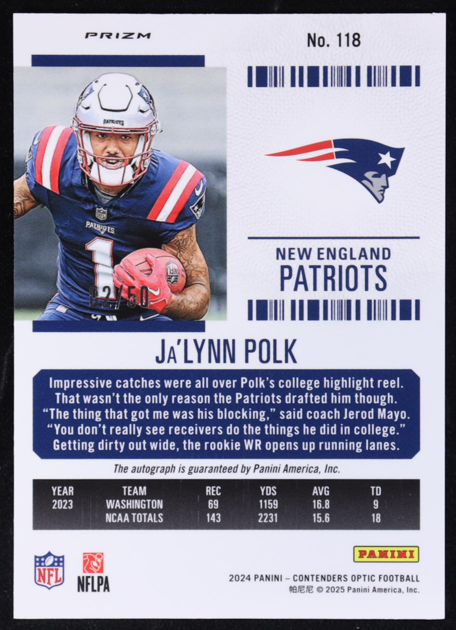 Ja'Lynn Polk 2024 Panini Contenders Optic Rookie Ticket Autographs Orange #118 RC #2/50