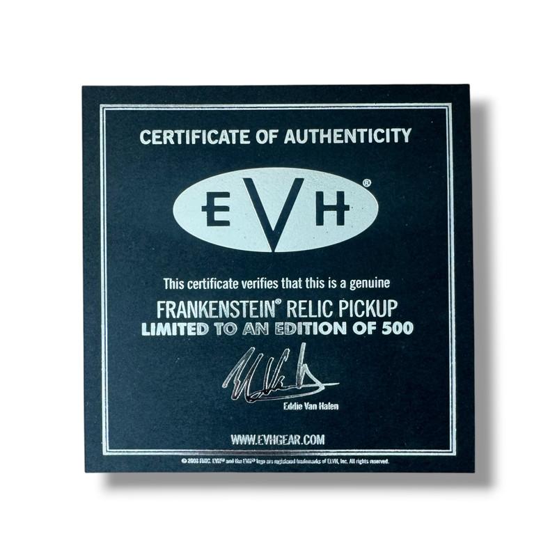 Custom Signed Replica EVH Frankenstrat Style Guitar measures approximately 39" in length and has been hand-signed on the pick-up by Eddie Van Halen (D. 2020). Includes hardshell guitar case.