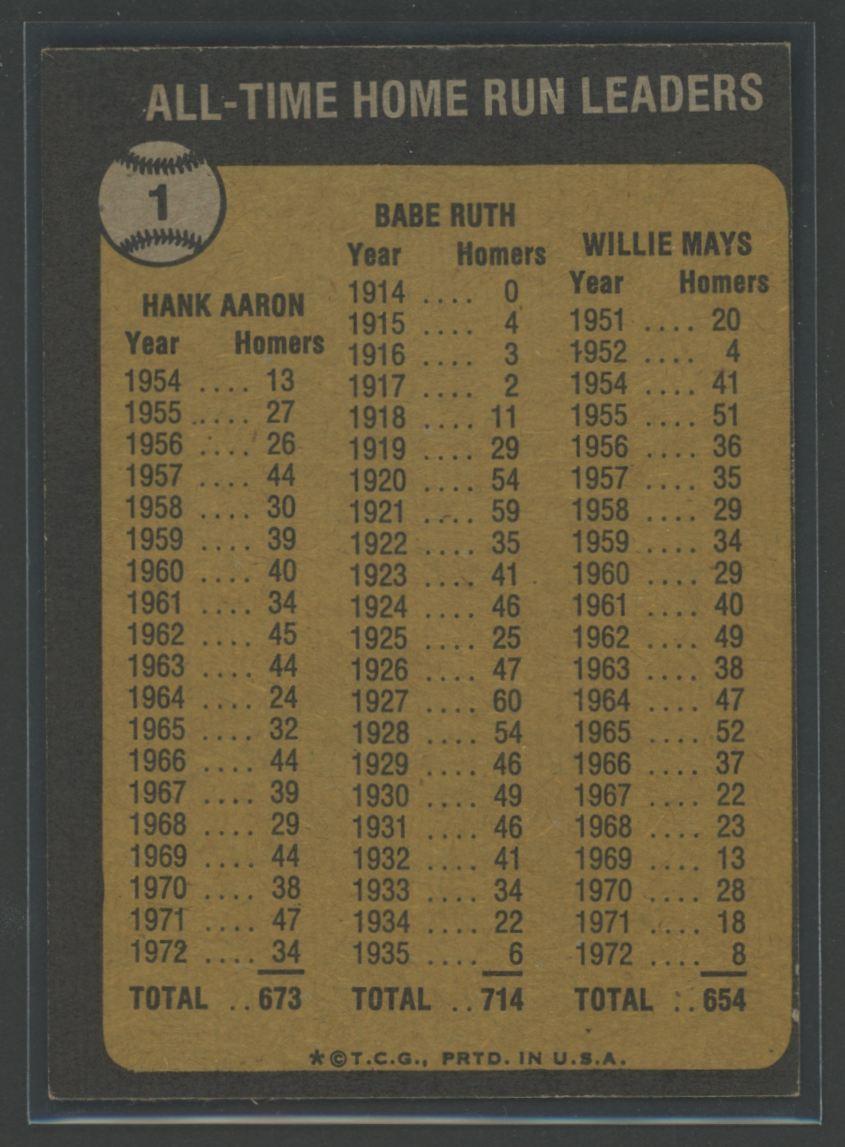 Babe Ruth / Hank Aaron / Willie Mays 1973 Topps #1 All-Time Home Run Leaders