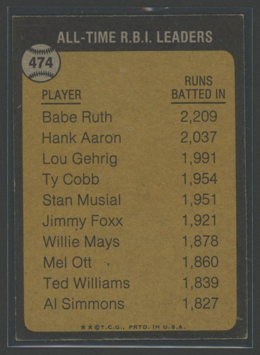 Babe Ruth 1973 Topps #474 / All-Time RBI Leader