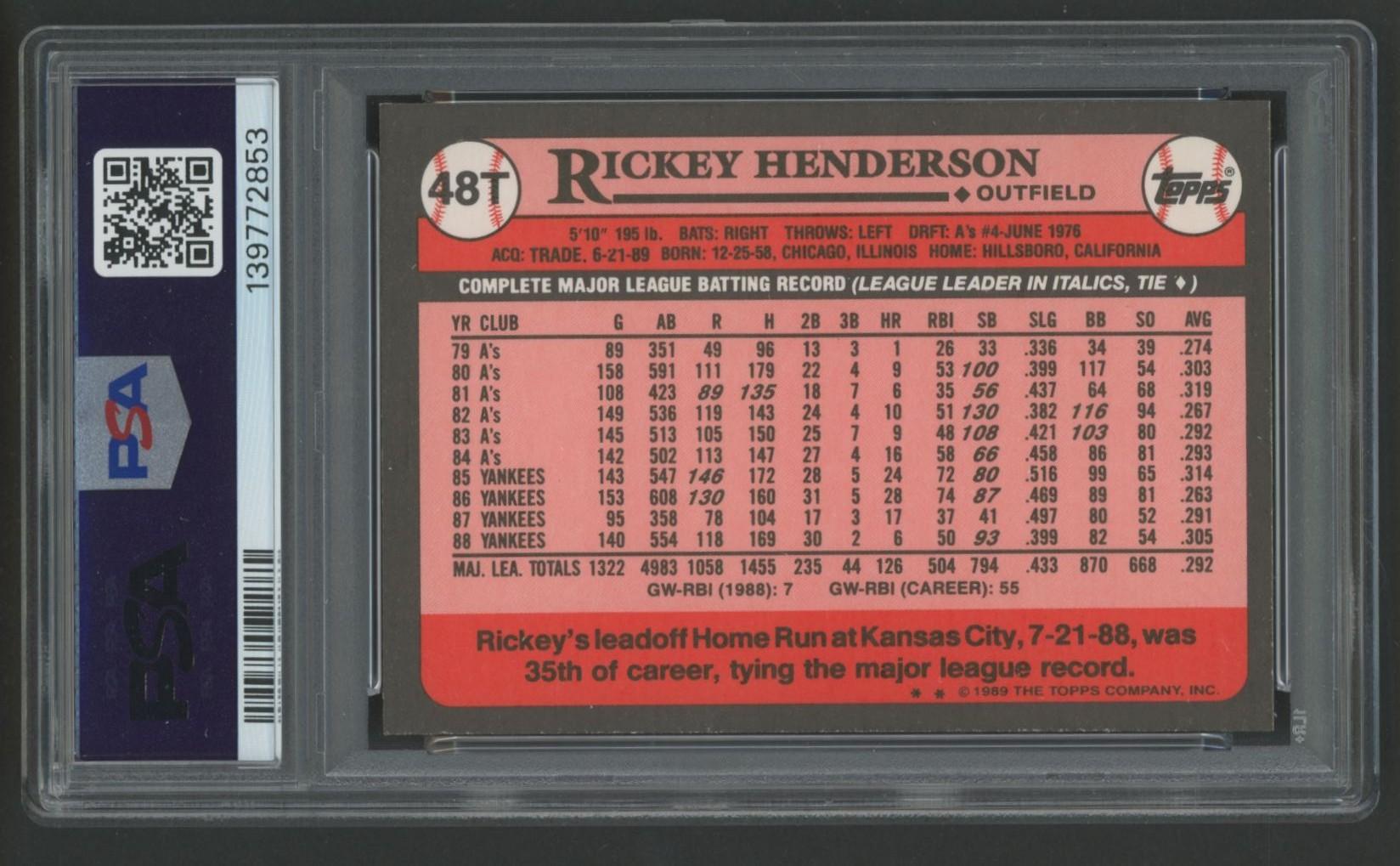 Rickey Henderson 1989 Topps Traded #48T (PSA 10)