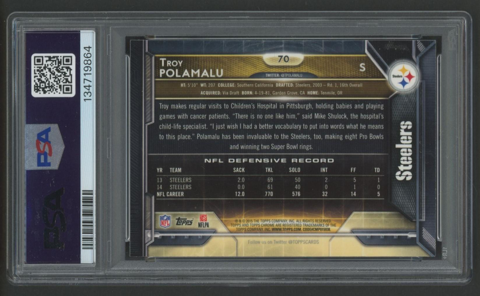 Troy Polamalu 2015 Topps Chrome #70 (PSA 10)