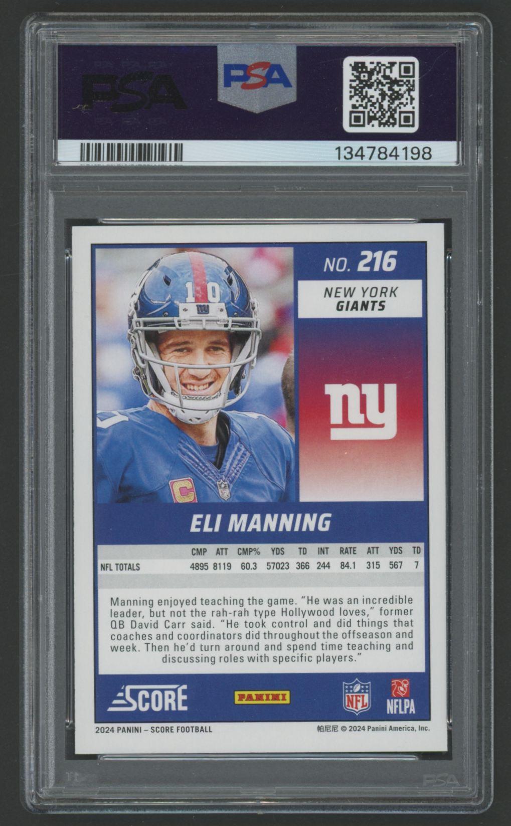 Eli Manning 2024 Score #216 (PSA 10)