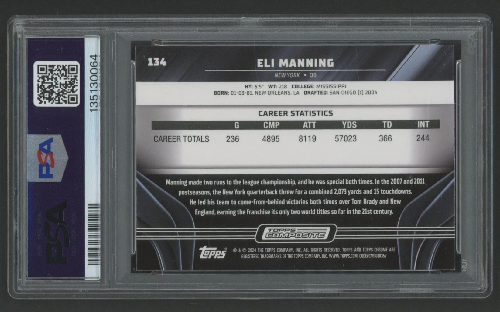 Eli Manning 2023 Topps Composite #134 (PSA 10)