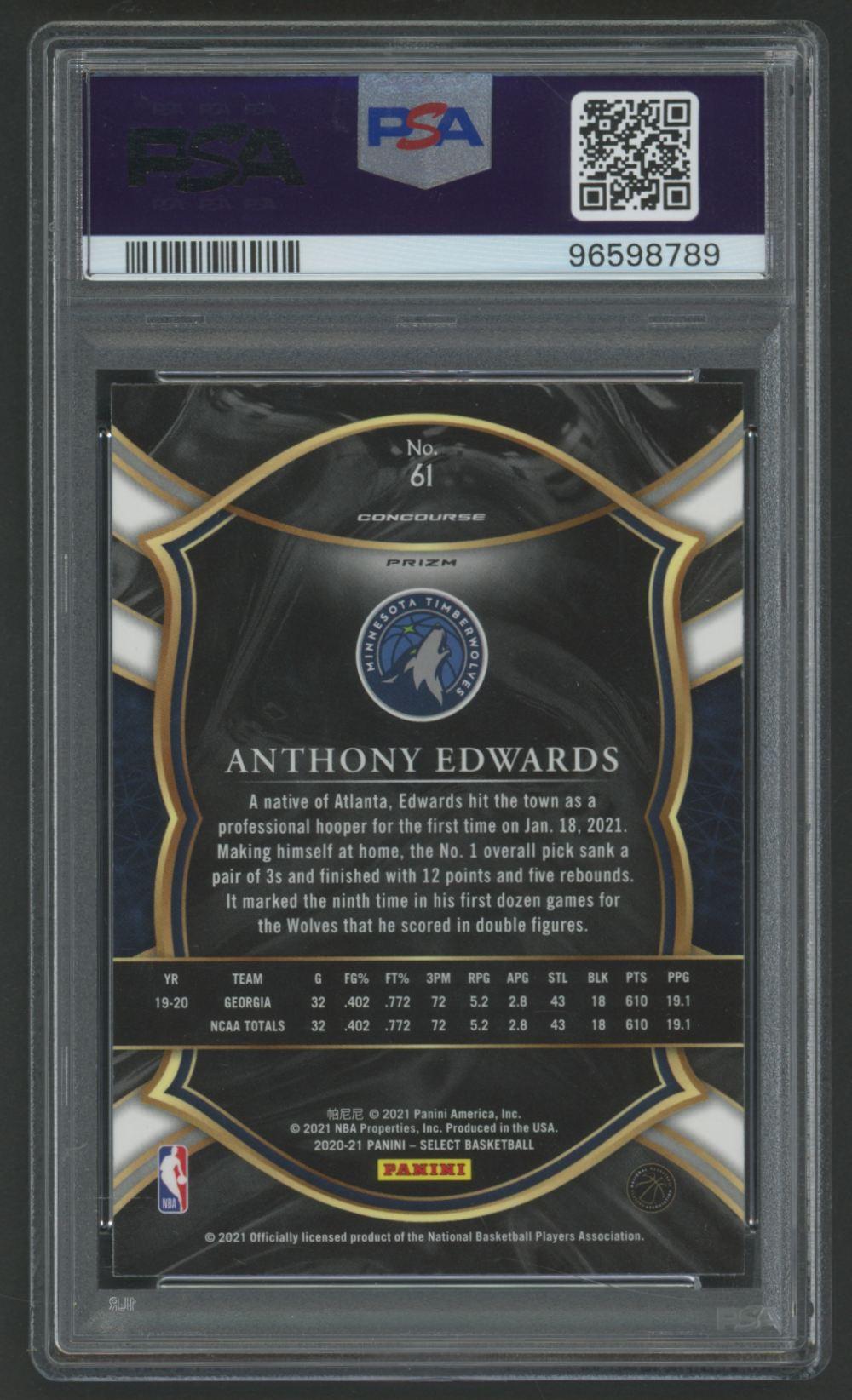 Anthony Edwards 2020-21 Select Prizms Green White Purple #61 RC (PSA 9)