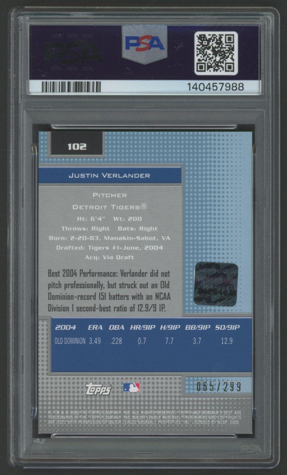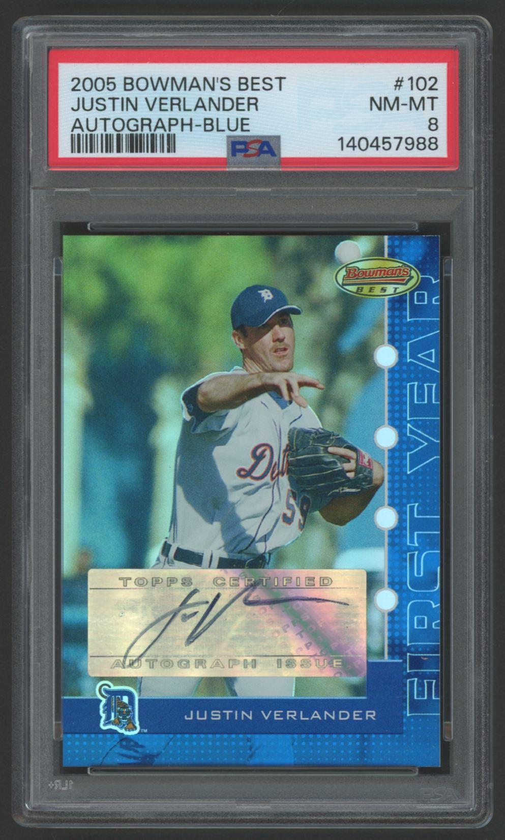 Justin Verlander 2005 Bowman's Best Autograph Blue #102 #65/299 RC (PSA 8)