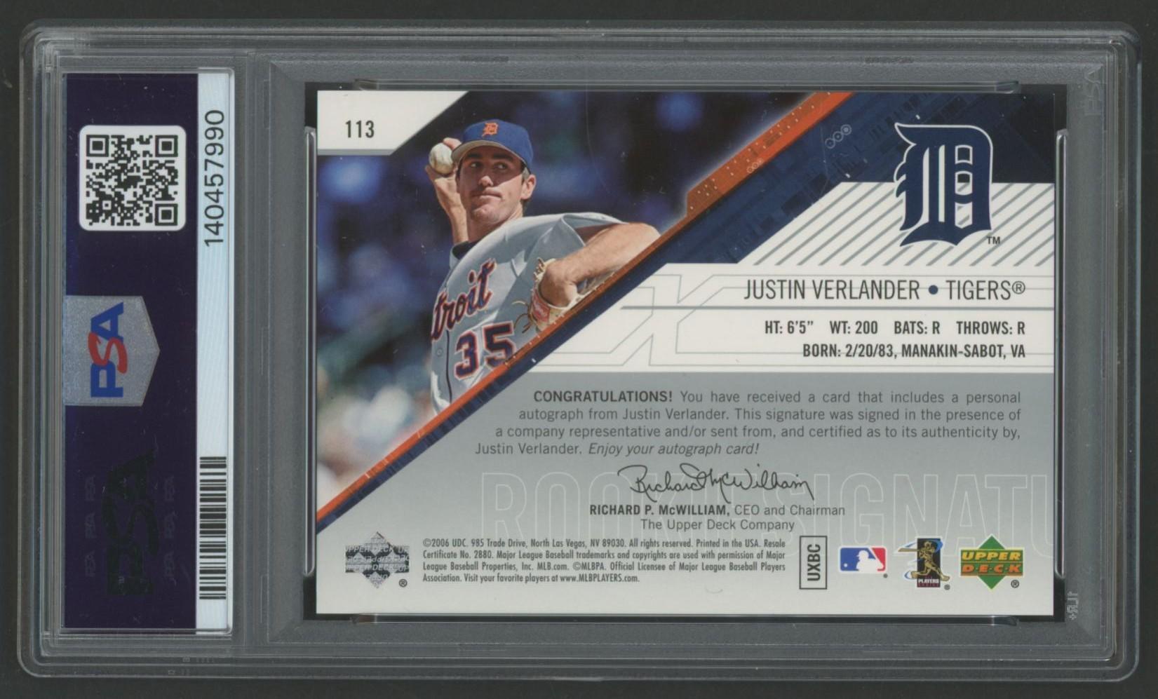 Justin Verlander 2006 SPx Autograph #113 #498/749 (PSA 8)