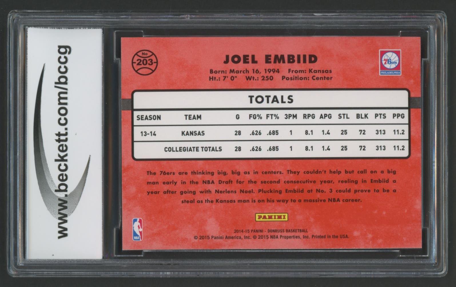 Joel Embiid 2014-15 Donruss RR #203 (BCCG 10)