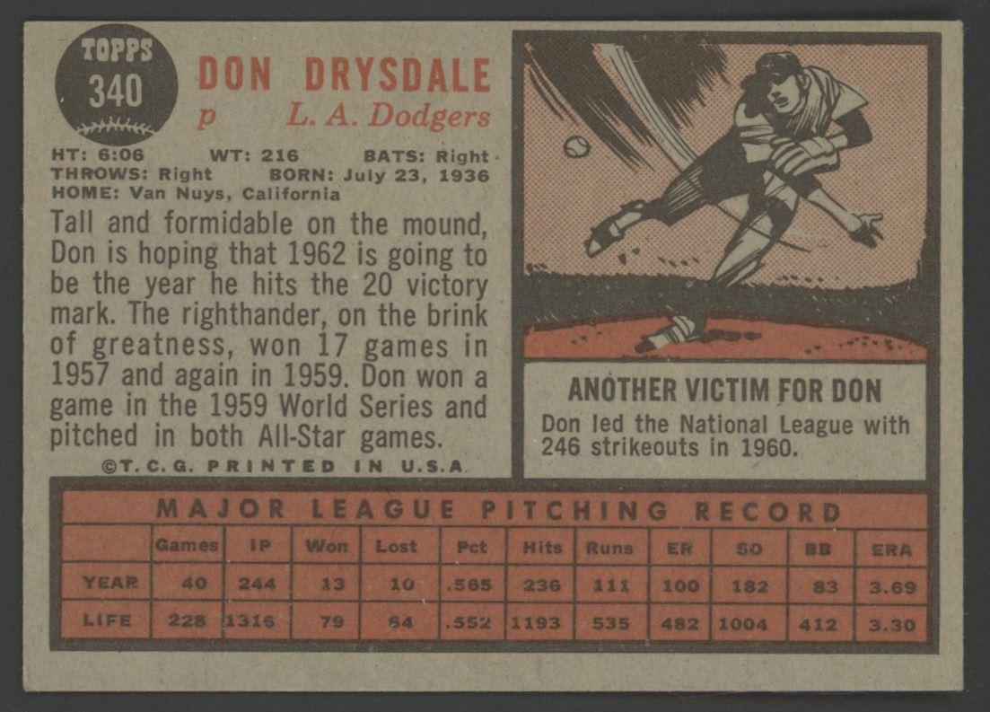 Don Drysdale 1962 Topps #340