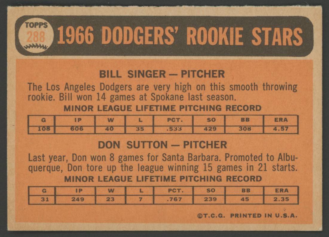 Don Sutton / Bill Singer 1966 Topps #288 Rookie Stars RC