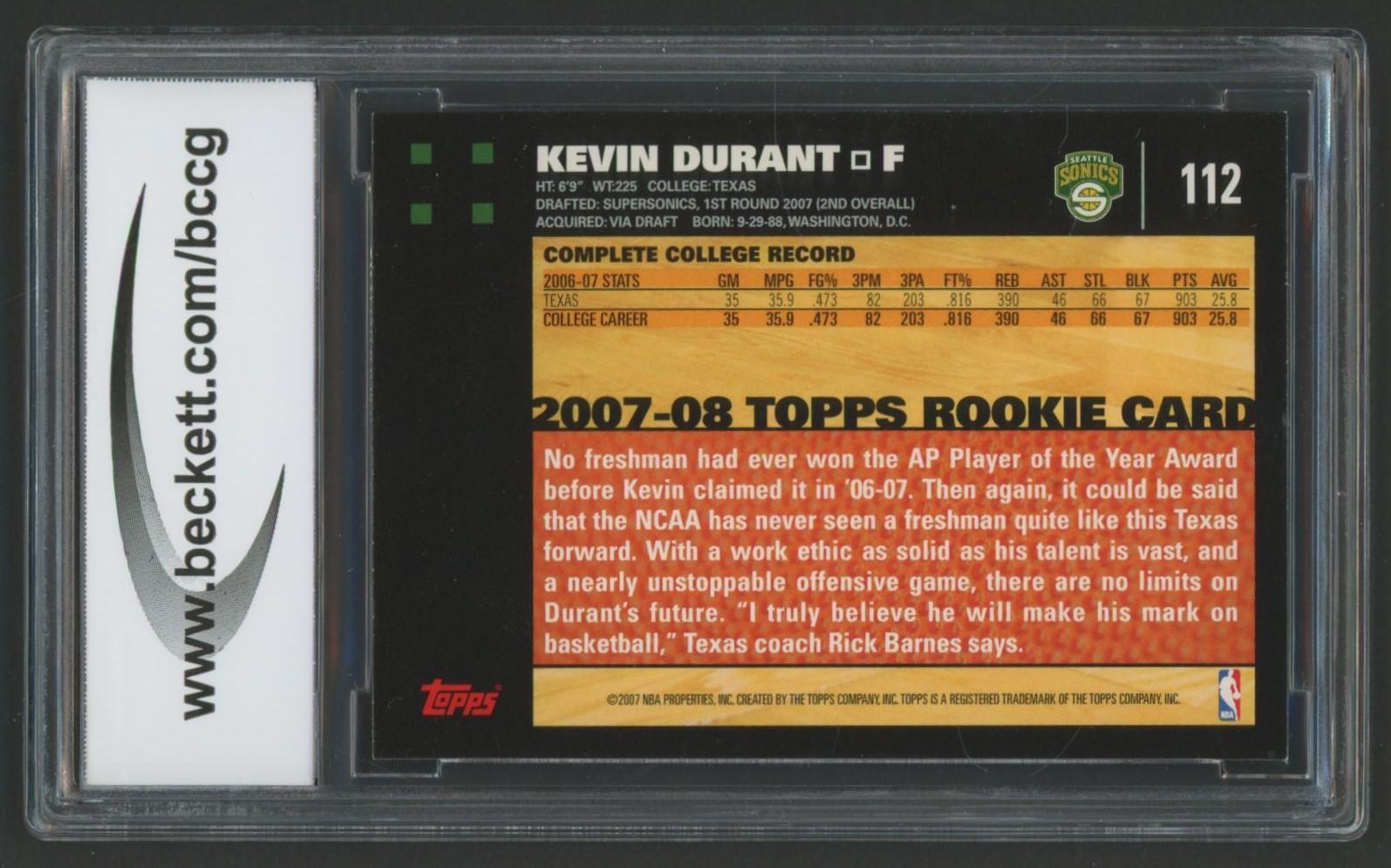 Kevin Durant 2007-08 Topps #112 RC (BCCG 10)