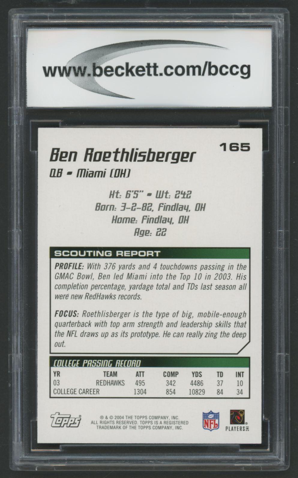 Ben Roethlisberger 2004 Topps Draft Picks and Prospects #165 RC (BCCG 10)