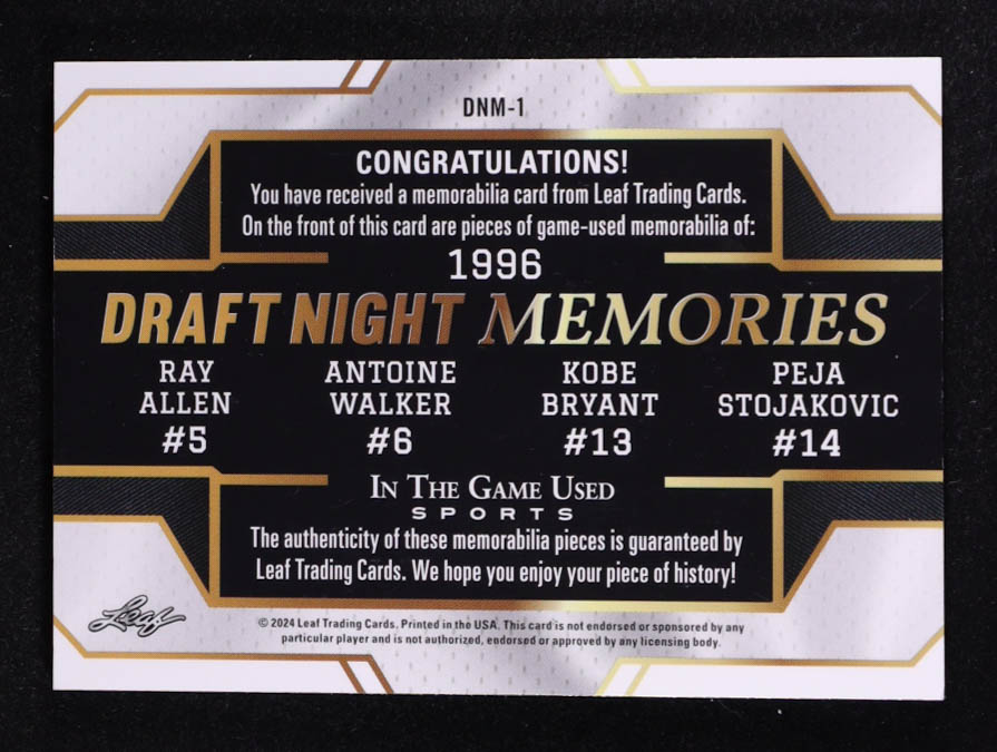 Ray Allen / Kobe Bryant / Antoine Walker / Peja Stojakovic 2024 Leaf In The Game Used Sports Draft Night Memories #DNM-1 #18/40