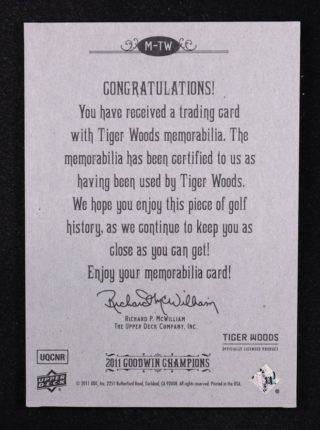 Tiger Woods 2011 Upper Deck Goodwin Champions Memorabilia #M-TW