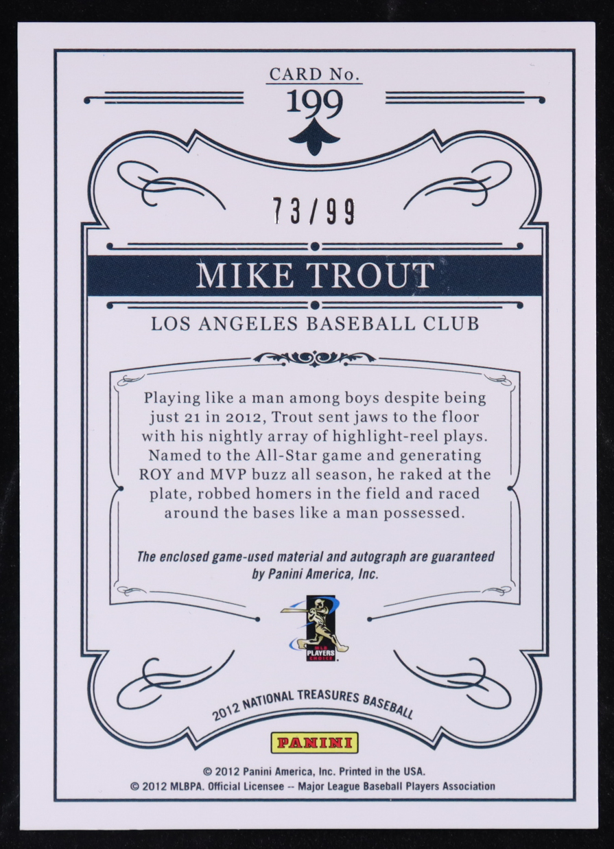 Mike Trout 2012 Panini National Treasures Jersey Autograph #199 #73/99
