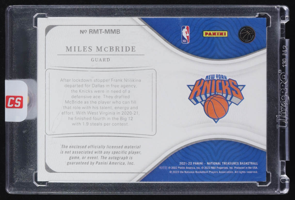 Miles McBride 2021-22 Panini National Treasures Rookie Triple Material Autographs Prime #16 #19/25 RC