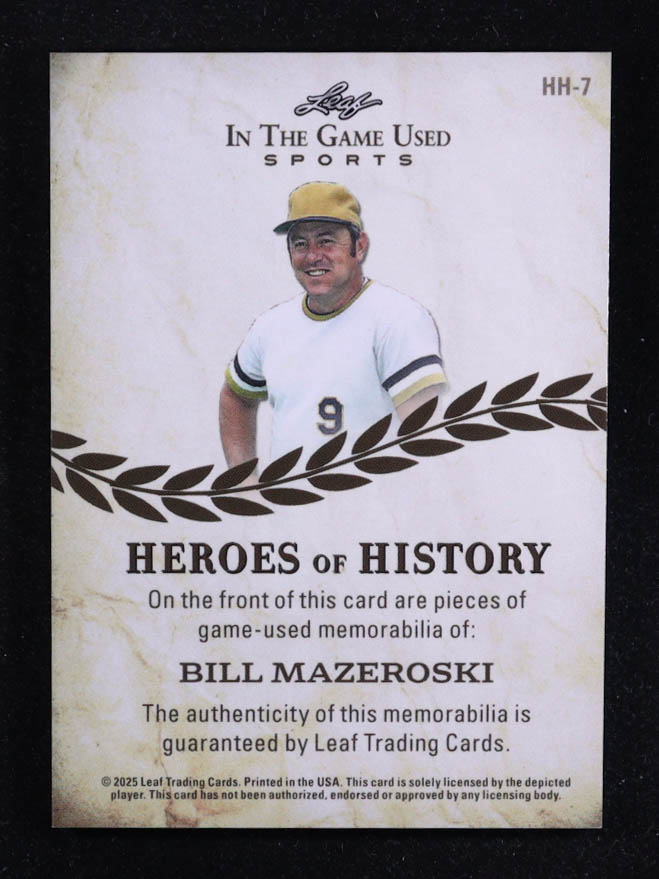 Bill Mazeroski 2025 Leaf ITG Used Sports Heroes Of History Triple Relic Turquoise #HH7 #7/7