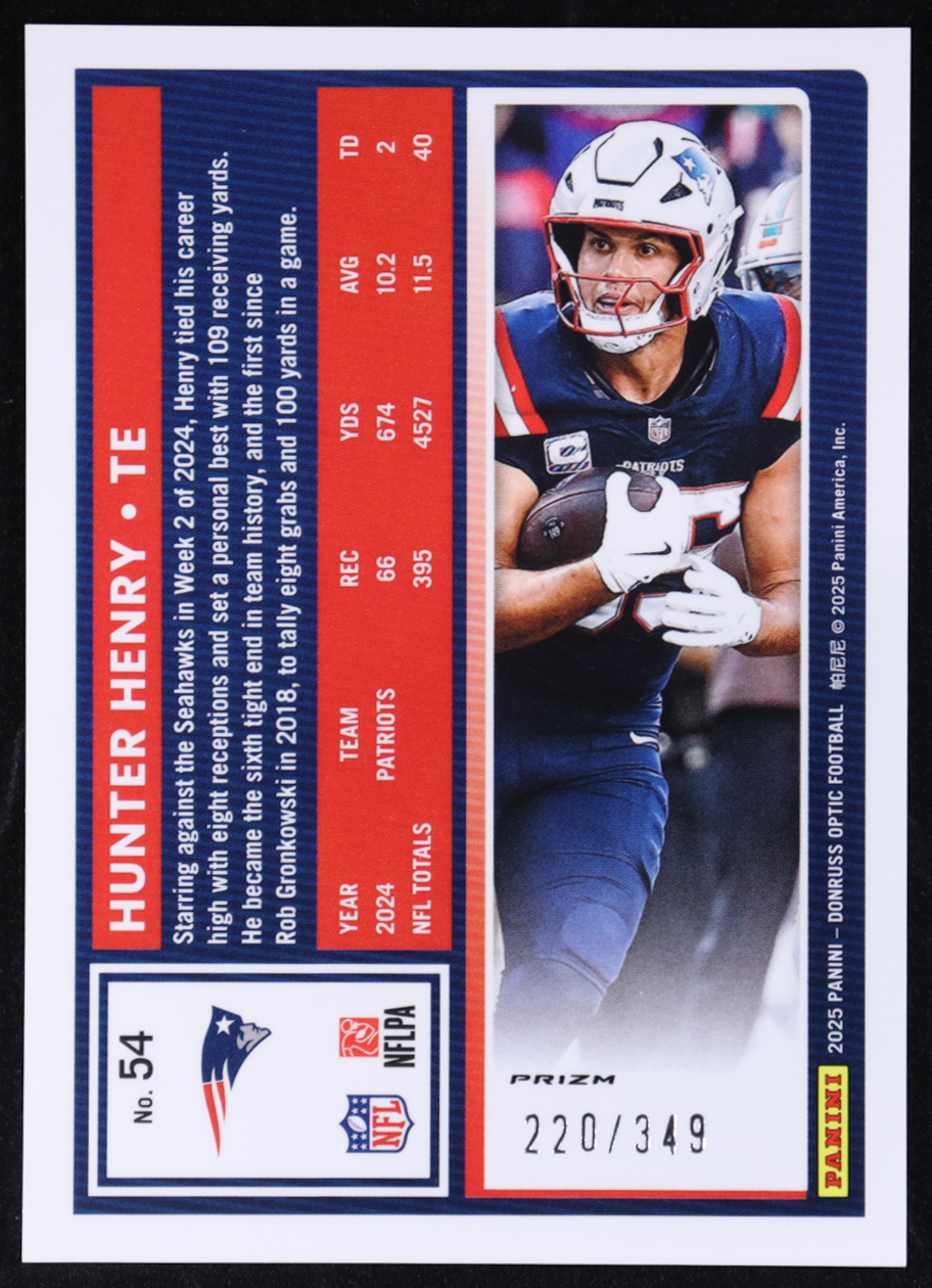 Hunter Henry 2025 Donruss Optic Aqua #54 #220/349