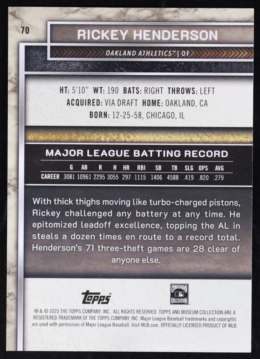 Rickey Henderson 2025 Topps Museum Collection #70 #101/249