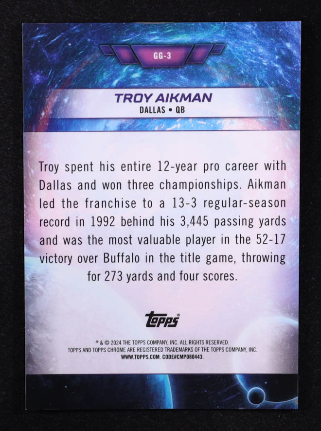 Troy Aikman 2024 Topps Chrome Galaxy Greats Gold Interstellar Refractors #GG-3 #36/50