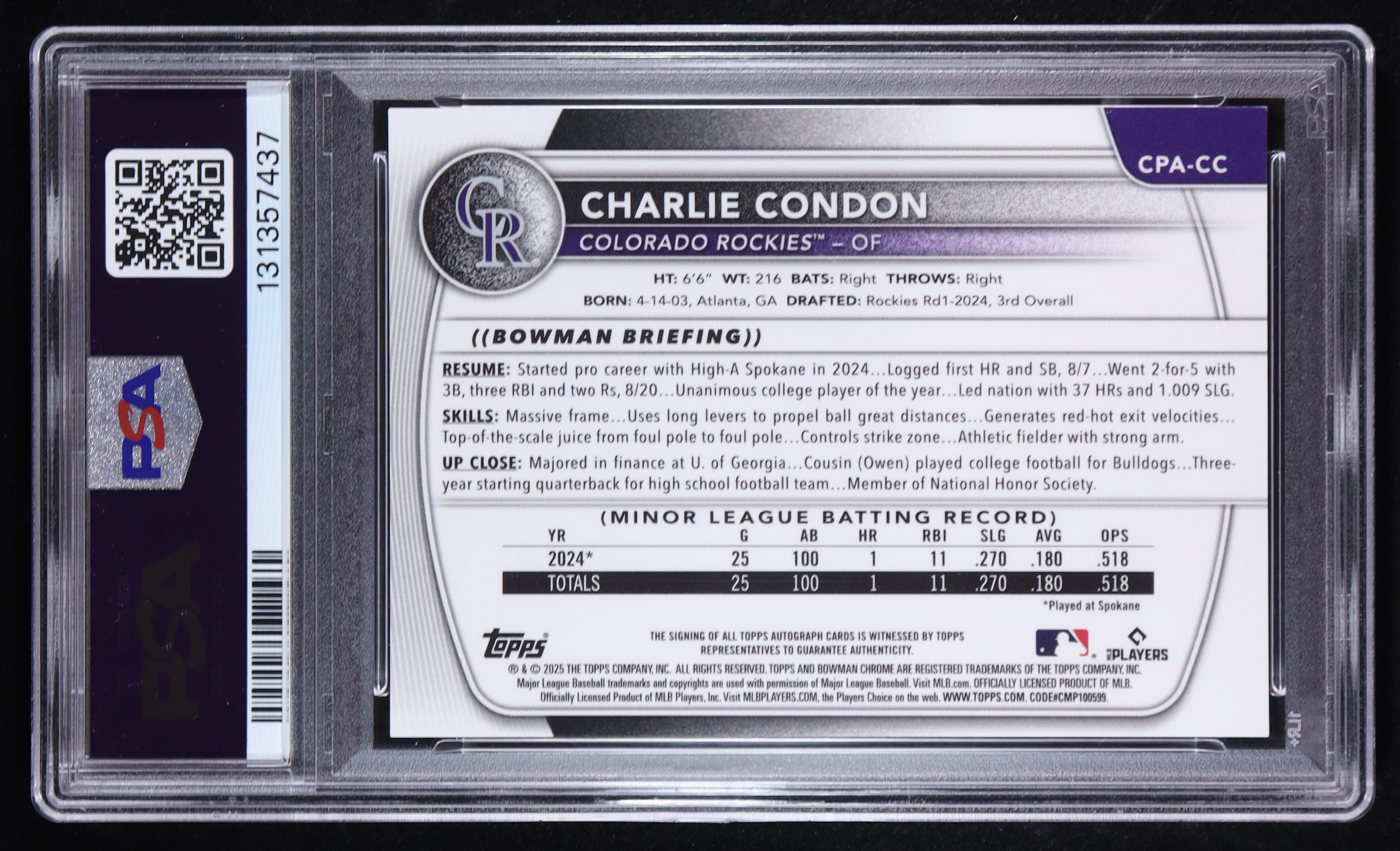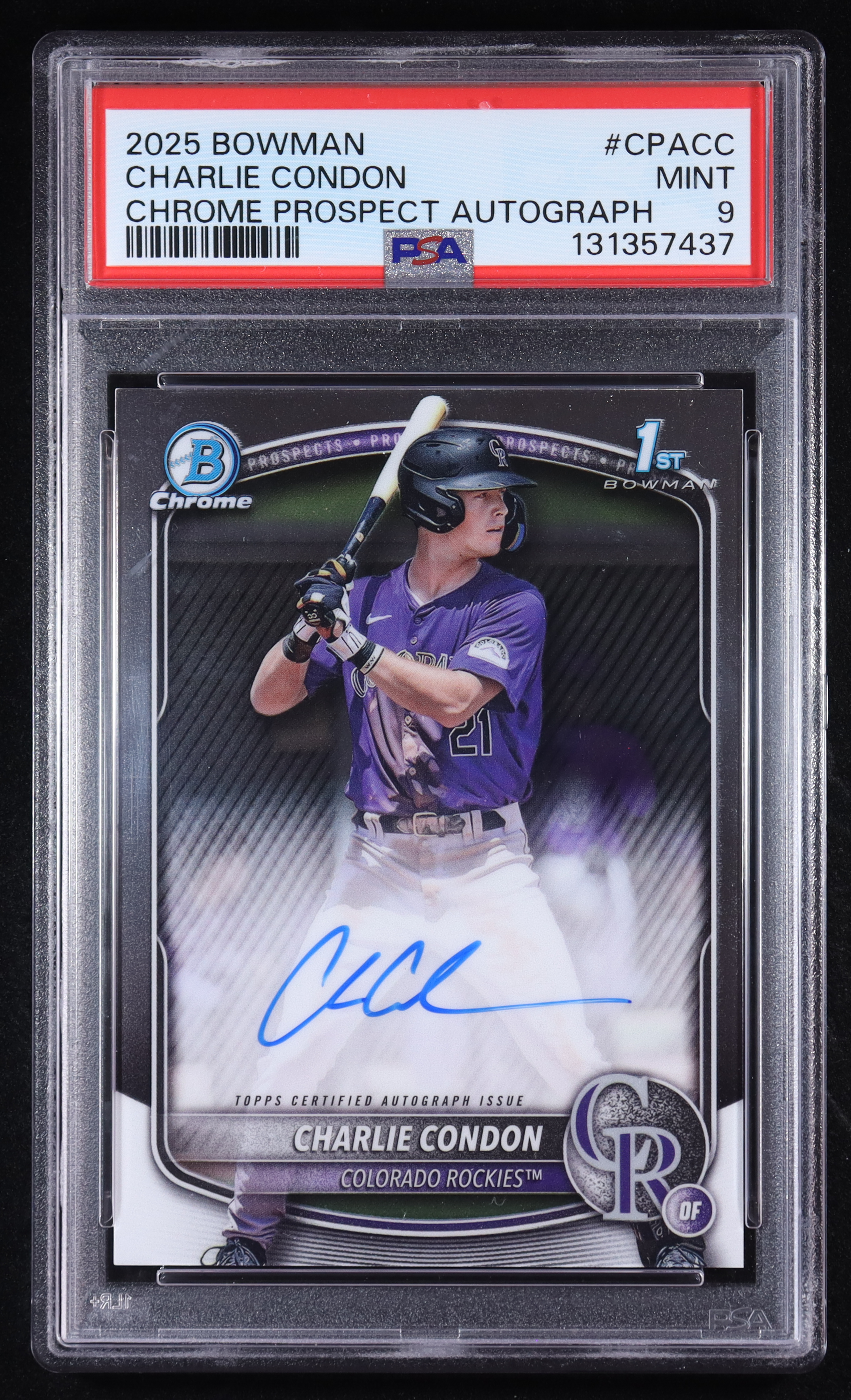 Charlie Condon 2025 Bowman Chrome Prospect Autograph #CPACC RC (PSA 9)