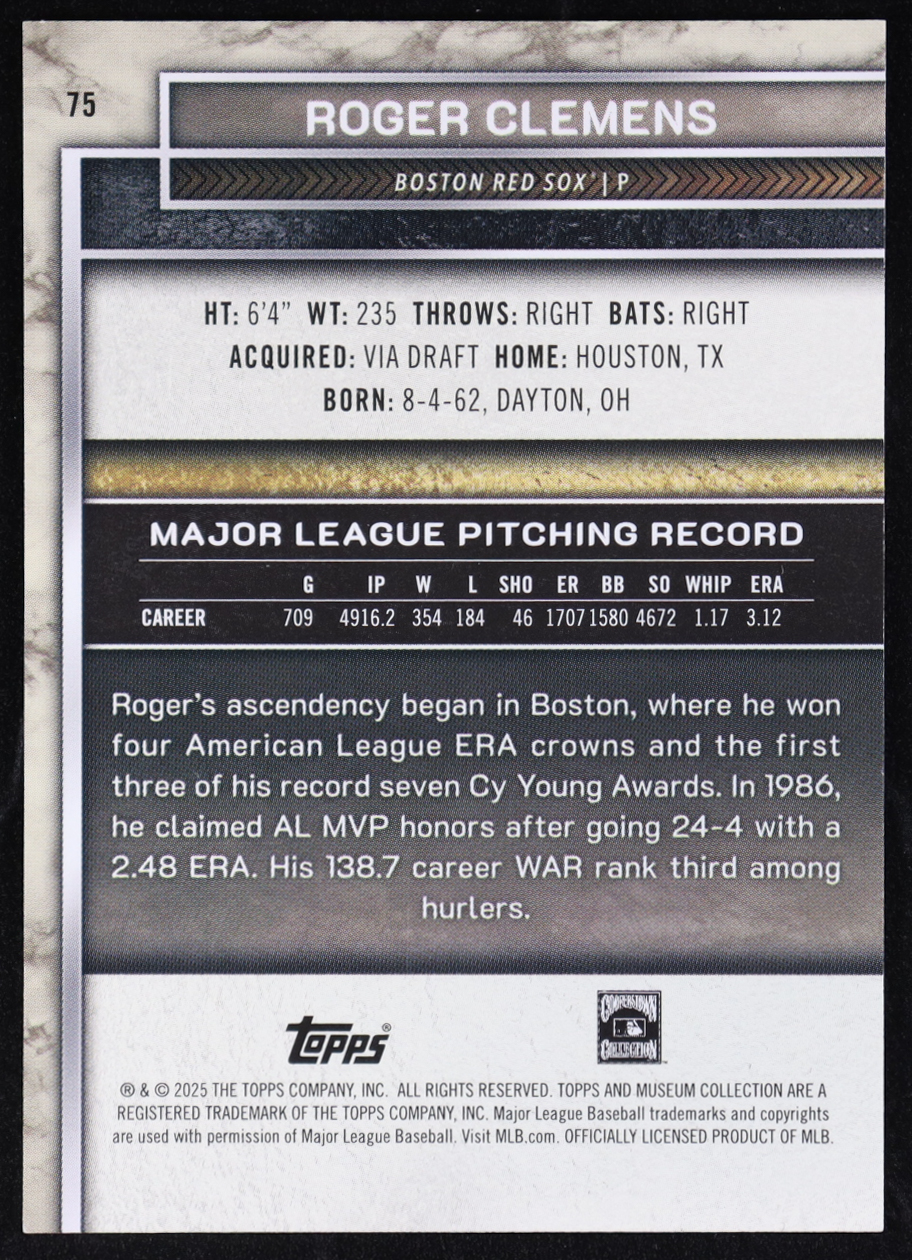 Roger Clemens 2025 Topps Museum Collection Amethyst #75 #40/99
