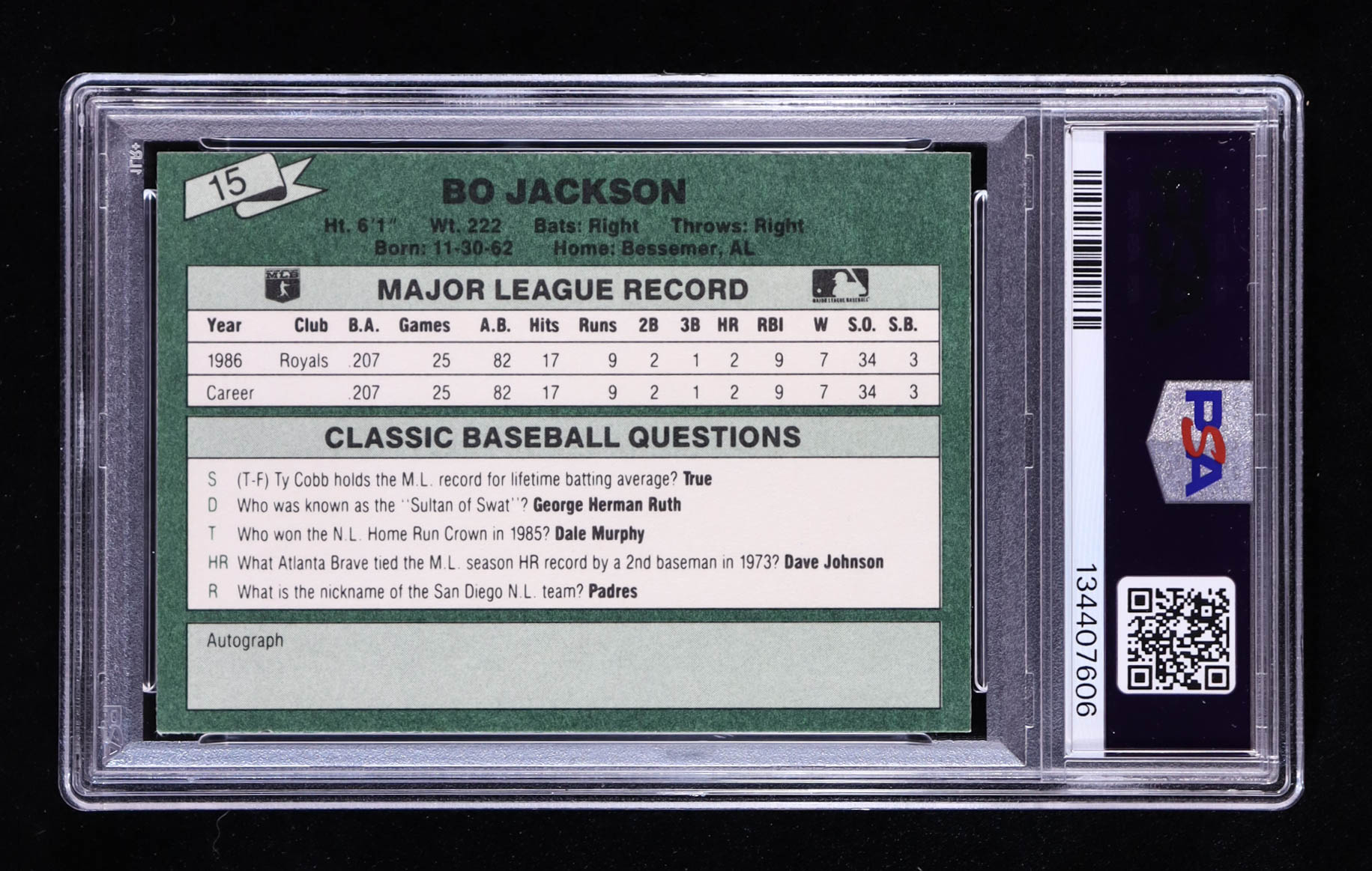 Bo Jackson 1987 Classic Game #15 RC (PSA 8)