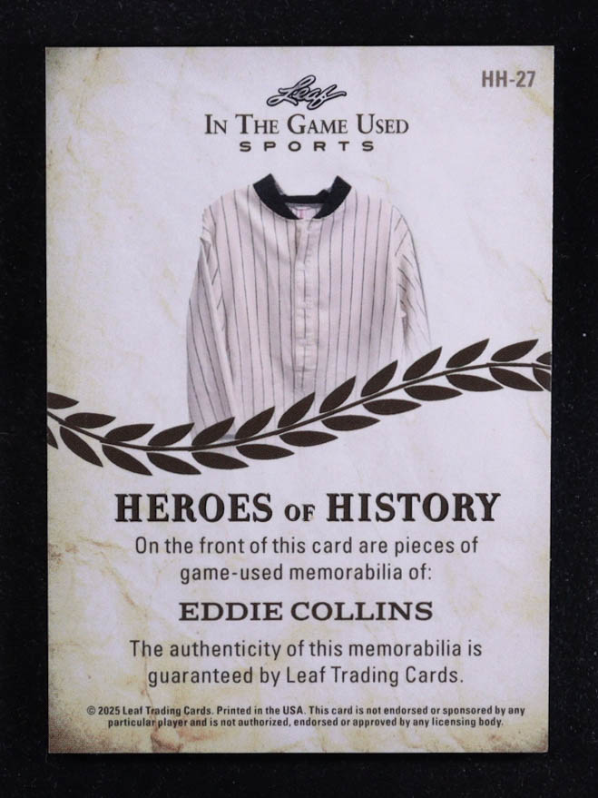 Eddie Collins 2025 Leaf ITG Used Sports Heroes Of History Triple Relic Blue #HH27 #3/9