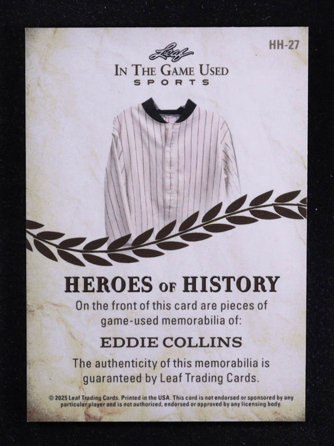Eddie Collins 2025 Leaf ITG Used Sports Heroes Of History Triple Relic Purple #HH27 ##3/6