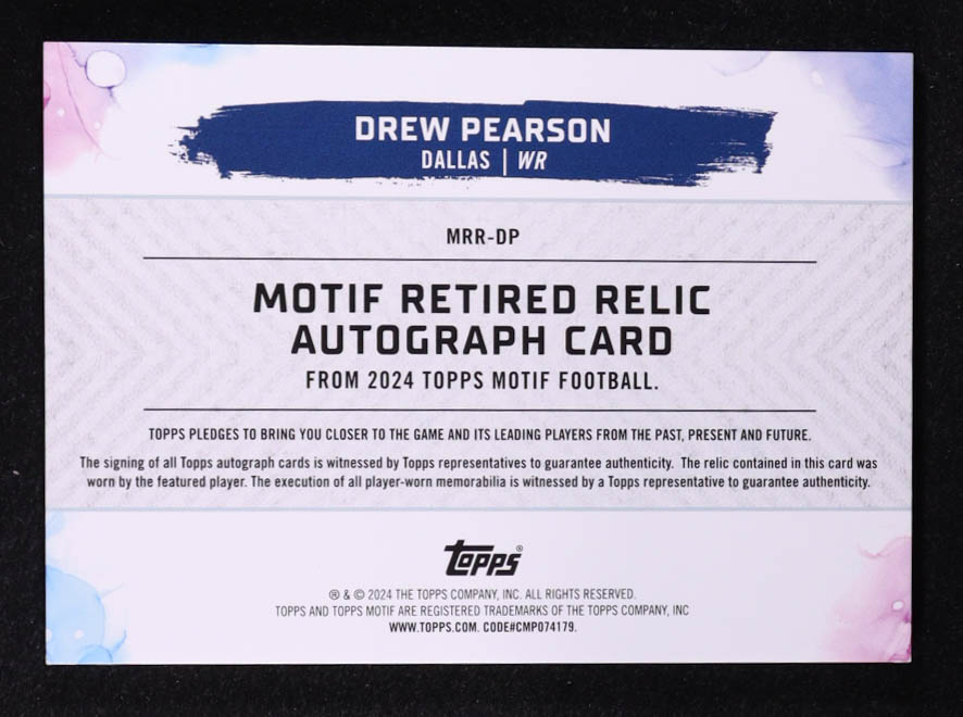 Drew Pearson 2024 Topps Motif Retired Relic Player-Worn Memorabilia Autograph #MRR-DP #02/20