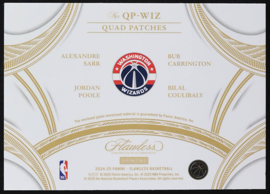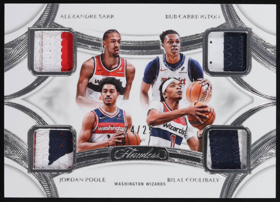 Alexandre Sarr RC / Bilal Coulibaly / Bub Carrington RC / Jordan Poole 2024-25 Panini Flawless Quad Patches #30 #24/25