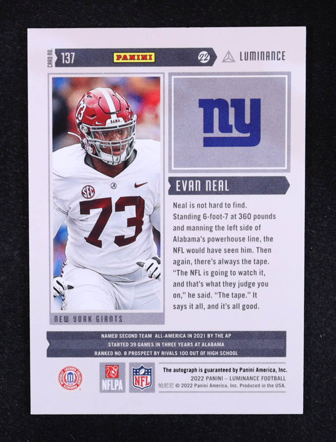 Evan Neal 2022 Panini Luminance Autographs #137 #173/349 RC