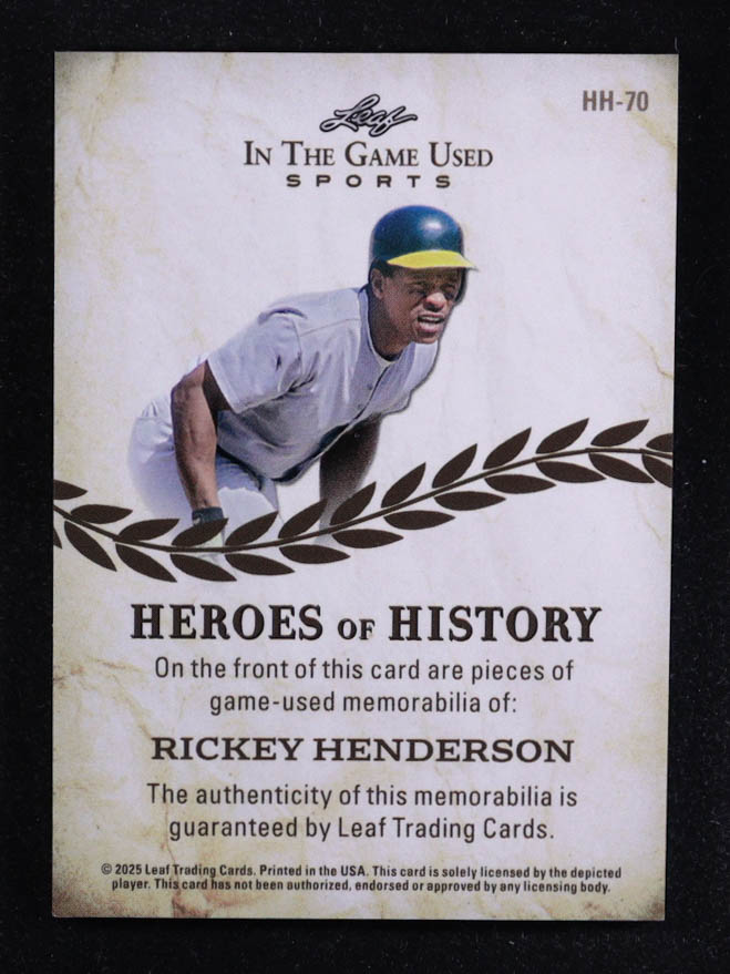 Rickey Henderson 2025 Leaf ITG Used Sports Heroes Of History Triple Relic Turquoise #HH70 #3/7