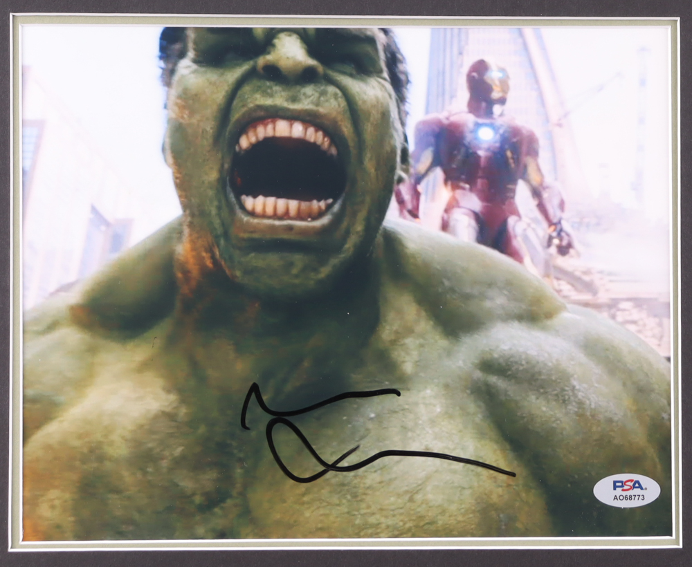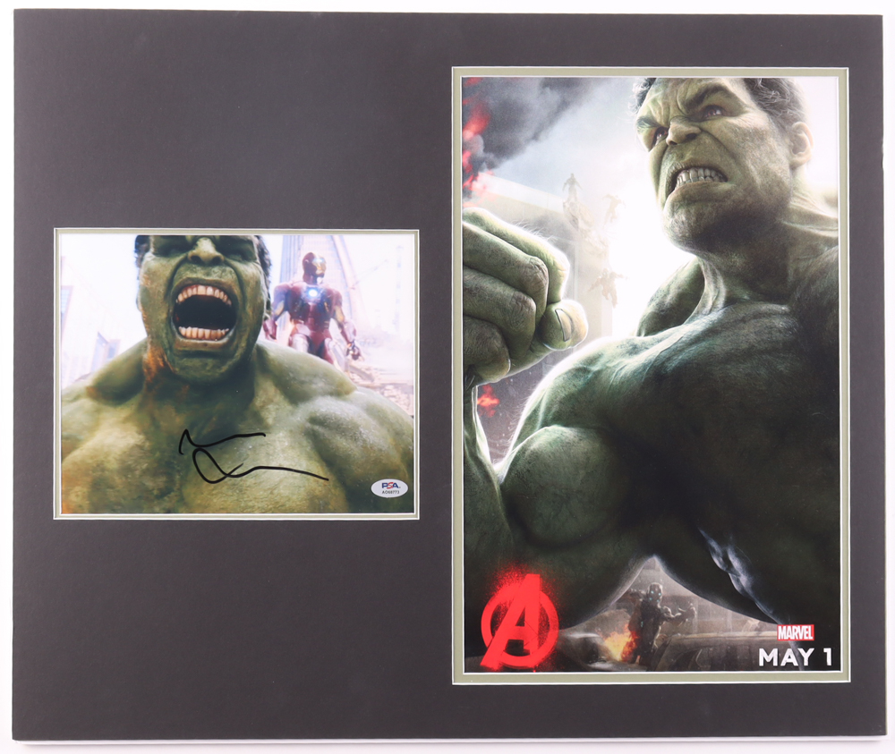 Custom matting measures 20" x 24" in size. Photograph has been hand-signed by Mark Ruffalo (Bruce Banner/The Hulk).