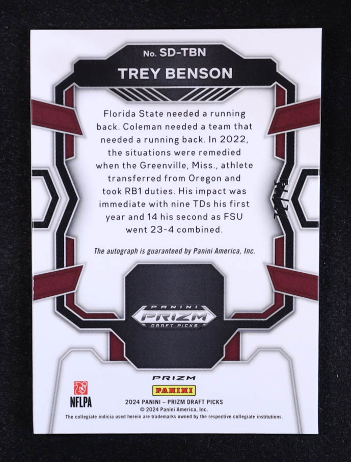 Trey Benson 2024 Panini Prizm Draft Picks Signing Day Blue Ice #48 RC #72/75