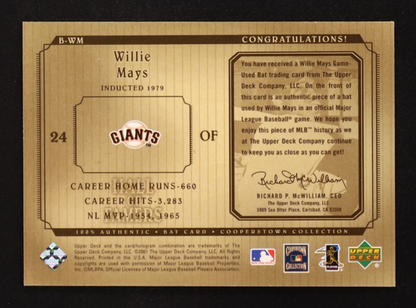 Willie Mays 2001 Upper Deck Hall of Famers Game Bat #BWM
