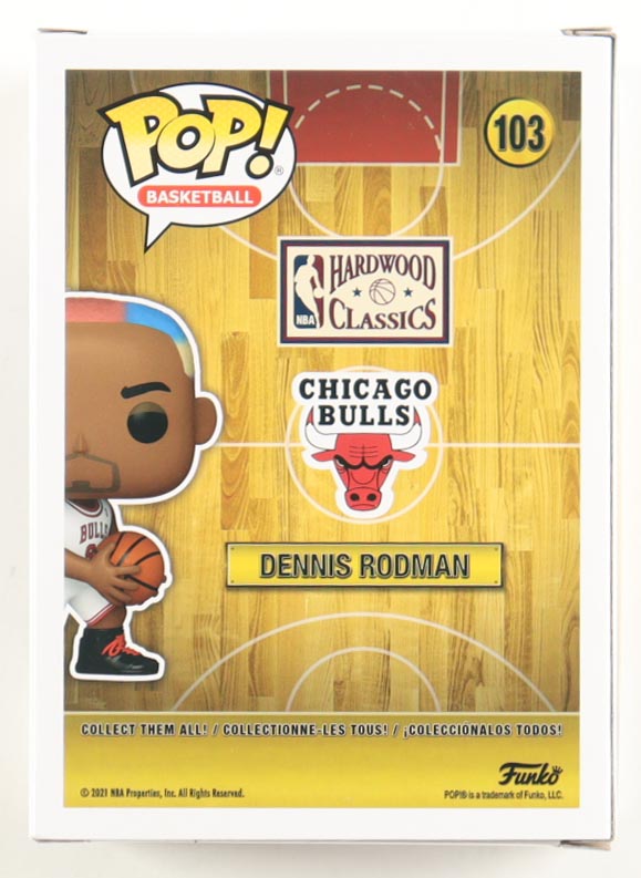 Funko Pop! vinyl figure measures approximately 4" in height and has been hand-signed on the packaging by Dennis Rodman (Chicago Bulls, HOF).