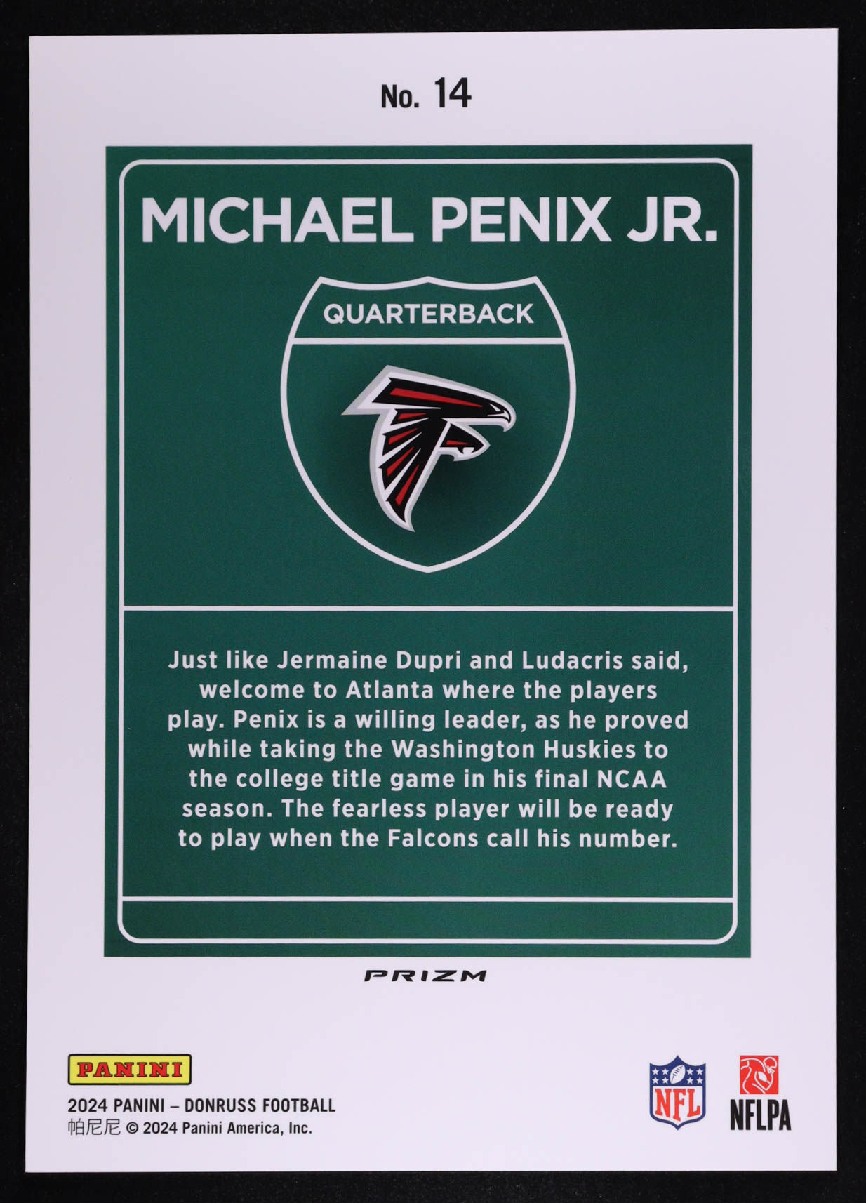 Michael Penix Jr. 2024 Donruss Downtown! Jumbo #14 RC