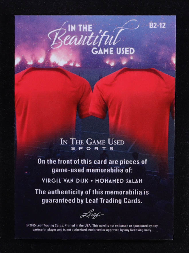 Virgil van Dijk / Mohamed Salah 2025 Leaf ITG Used Sports In The Beautiful Game Used Relics Silver Sparkle #B212 #1/15