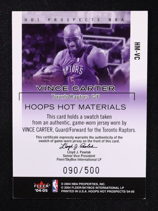Vince Carter 2004-05 Fleer Hoops Hot Materials Game-Worn Jersey #HM-VC #090/500