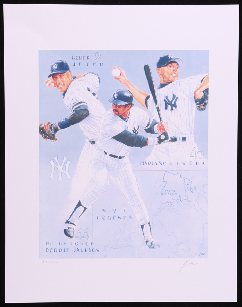 "NYC Legends" Yankees - Derek Jeter, Mariano Rivera & Reggie Jackson 11x14 LE Lithograph by John Yim #/100 (PA)